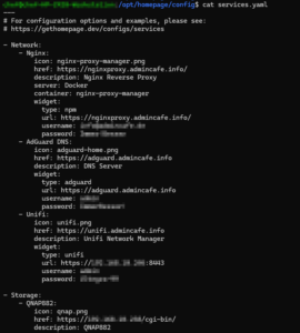 7. Finalize with a new Homepage Project Dashbboard. Spin it up with a compose file: